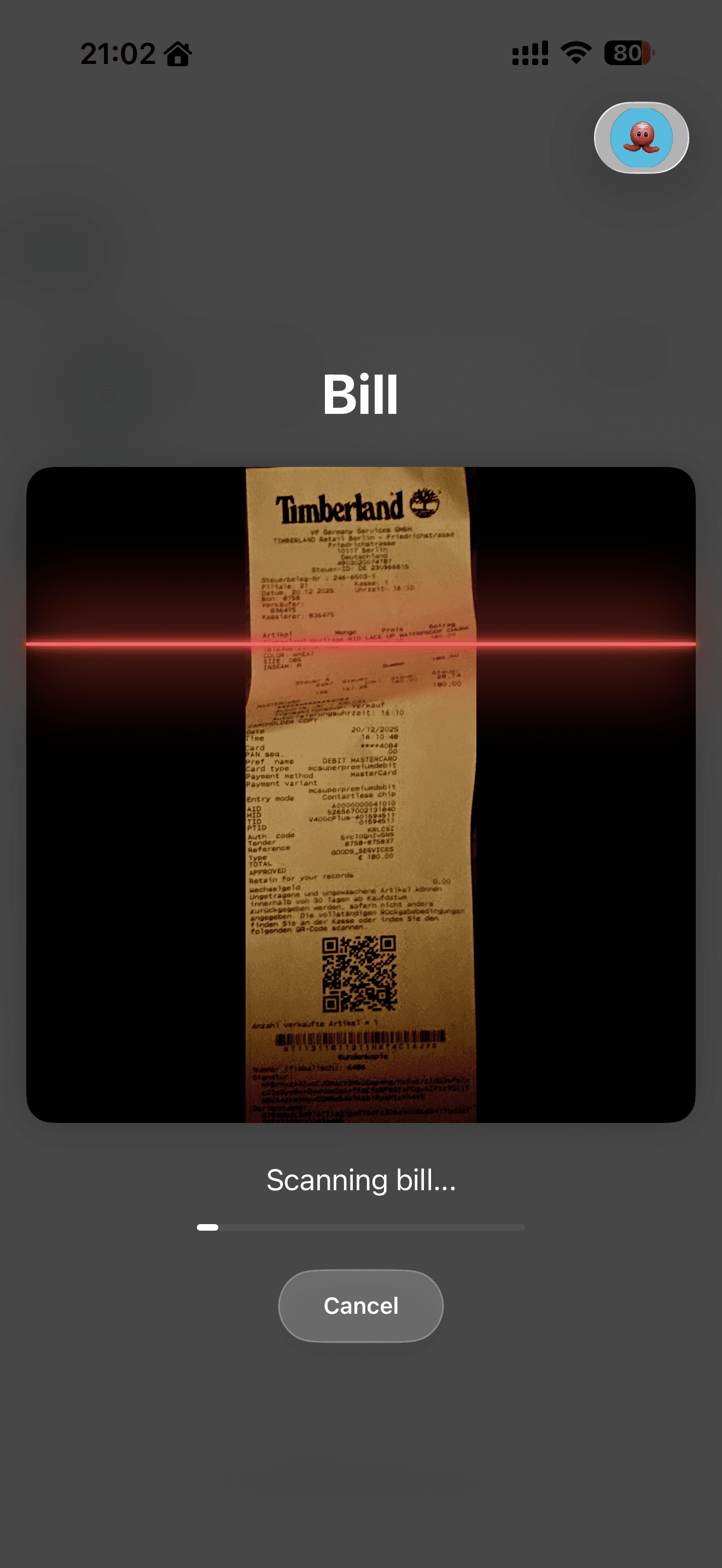 With on device OCR and local AI models Bill App supports fully offline Bill scanning and analysis.